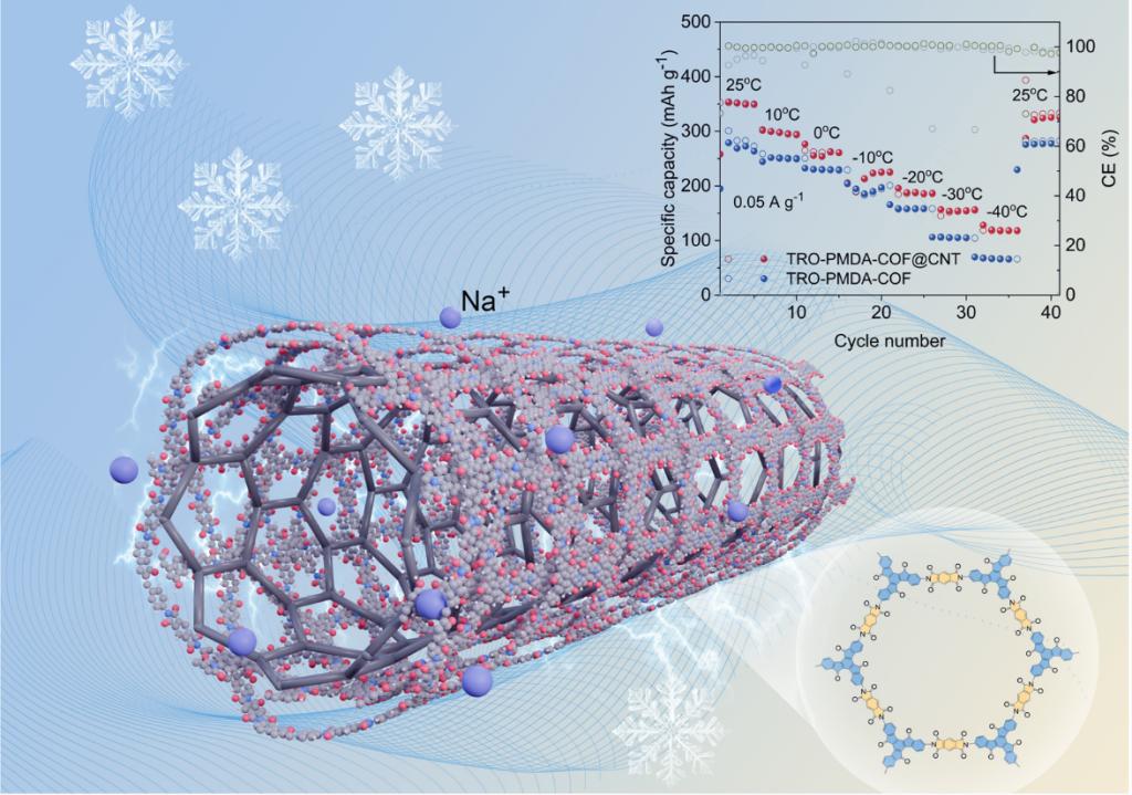近日,beat365官方网站能源材料化学研究院陈远研究员与华中科技大学王成亮教授联手共同在期刊Angew. Chem., Int. Ed.上发表题为 “Truxenone-based Covalent Organic Framework/Carbon Nanotube Composite for High-Performance Low-Temperature Sodium-Ion Batteries” 的文章(论文链接:https://doi.org/10.1002/anie.202511714)。陈远研究员、华中科技大学王成亮教授为论文共同通讯作者。硕士生杨双勤,吴静美为共同第一作者。beat365官方网站能源化学材料研究院为第一完成单位。